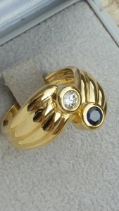 Details Sur Bague Toi Moi Or Jaune18 Carats Diamant 0 35 Ct Saphir 0 30 Ct 3 44 Grammes
